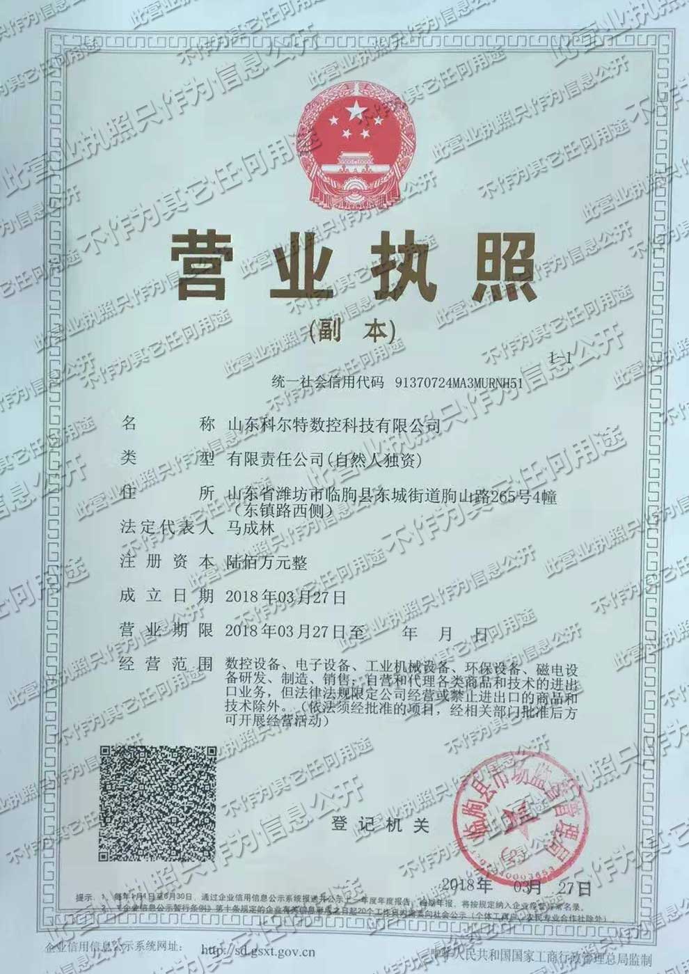 山東科爾特?cái)?shù)控科技有限公司成立于2018年,位于濰坊市,是一家集研發(fā)、生產(chǎn)、銷(xiāo)售、服務(wù)于一體的現(xiàn)代化數(shù)控設(shè)備技術(shù)企業(yè)。主要生產(chǎn)光纖激光切割機(jī)、大型激光切割機(jī)、管材激光切割機(jī)、封閉式切換平臺(tái)激光切割機(jī)、全自動(dòng)光纖激光下料線(xiàn)等。